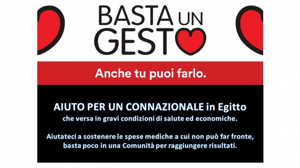 Siamo a chiedervi un AIUTO PER UN CONNAZIONALE in Egitto, che versa in gravi condizioni di salute ed economiche.